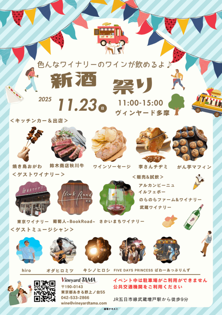 登録なしでもご来場いただけますが、ご協力をいただけた方には、特別にヴィンヤード多摩の新酒がグラス1杯サービスになりますので、ぜひご登録をお願いします🍷