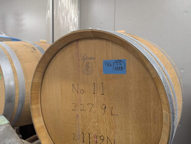 昨年収穫したヤマソービニヨンが、まもなく1年間の樽の中での眠りから覚めて「東京ルージュ」として目覚めのときを迎えます。